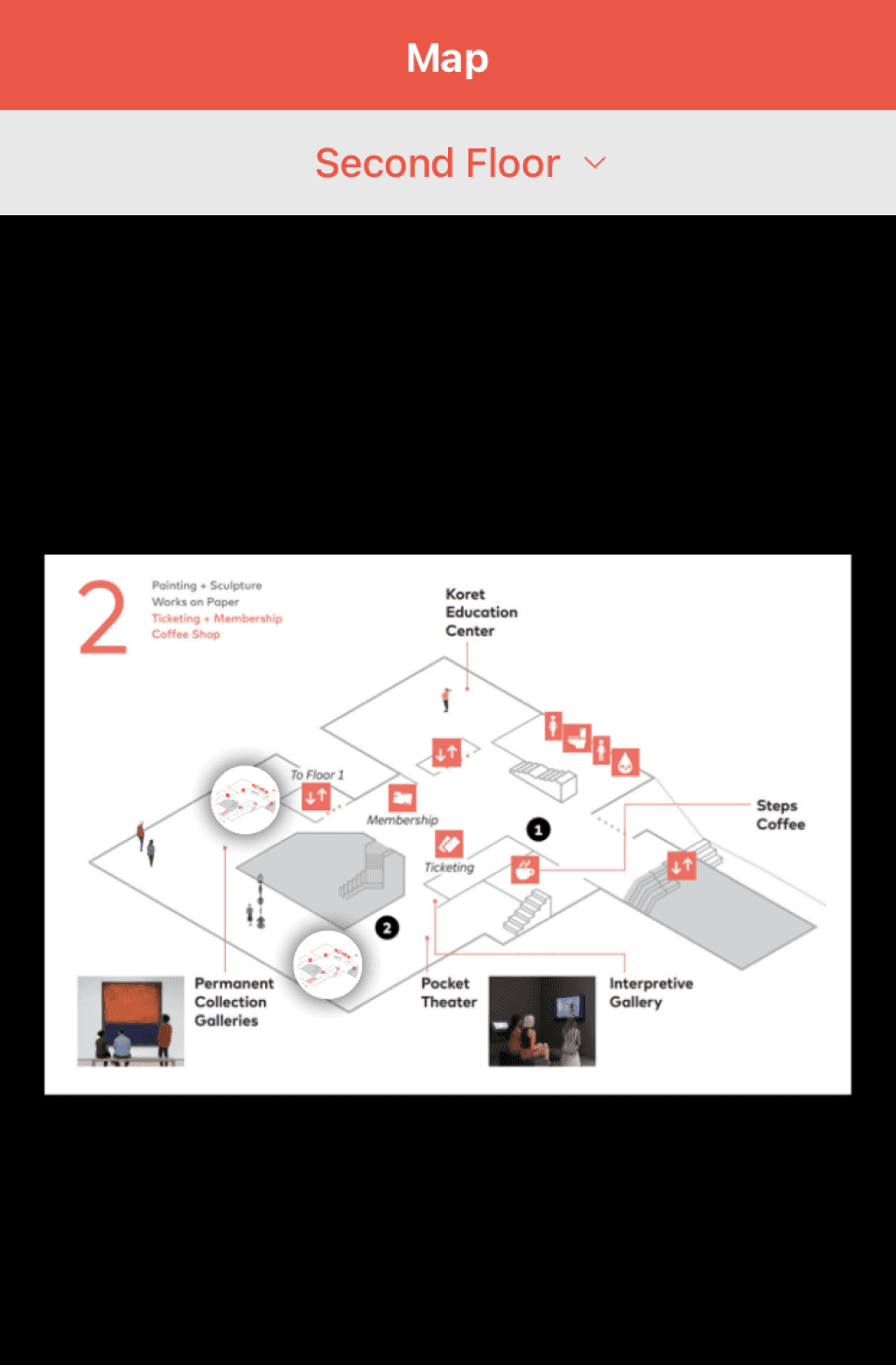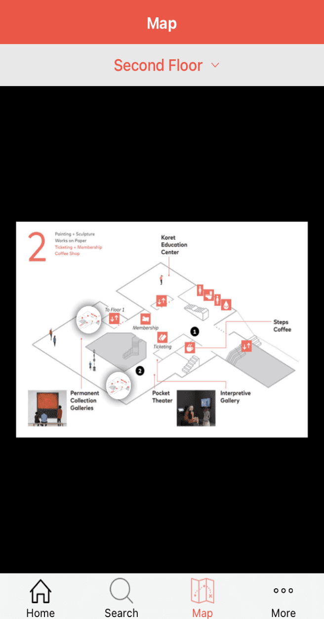 With animated directional cues, it provide user navigation to find the museum facilities.