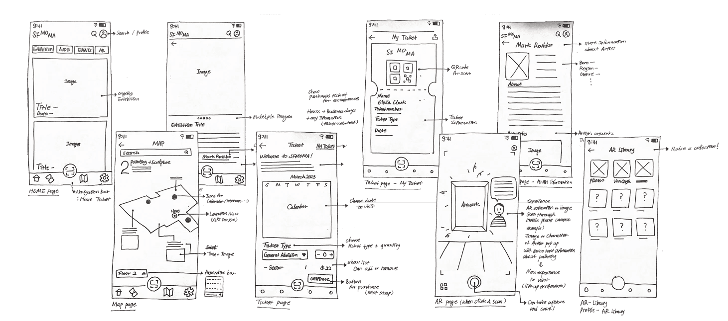 To better understand the experience at SFMOMA, I went to museum and observed how visitors interact with the space and artworks. Additionally, I conducted interviews with 5 individuals who have visited SFMOMA, discussing on their needs and expectations.
