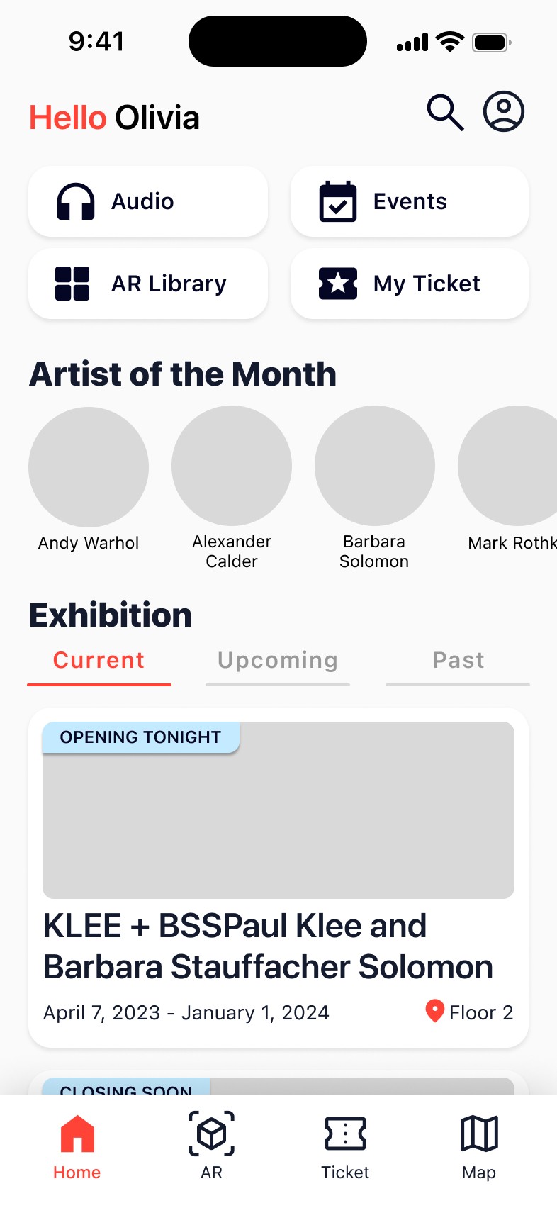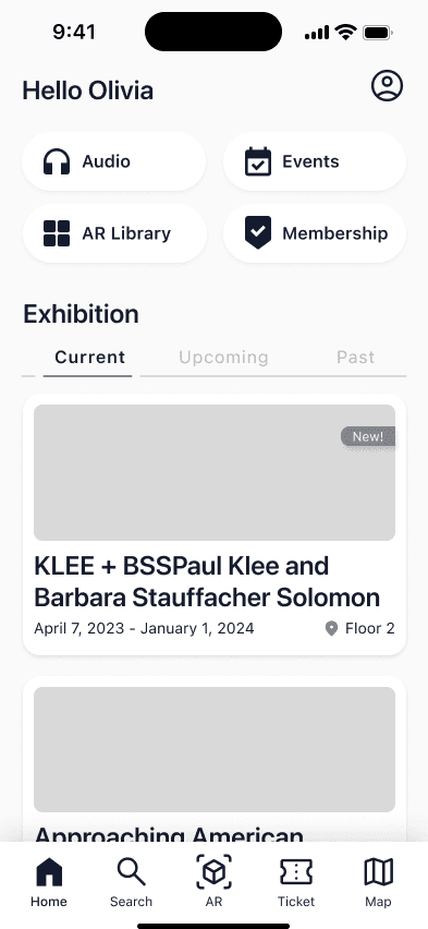 One of the challenges that I faced was considering how to promote user engagement with AR feature. I realized interface and research for game should focus on how to make users more engaging. I want to spend more time exploring gamification techniques that can encourage visitors to collect artworks and stay with the app throughout their museum visit.