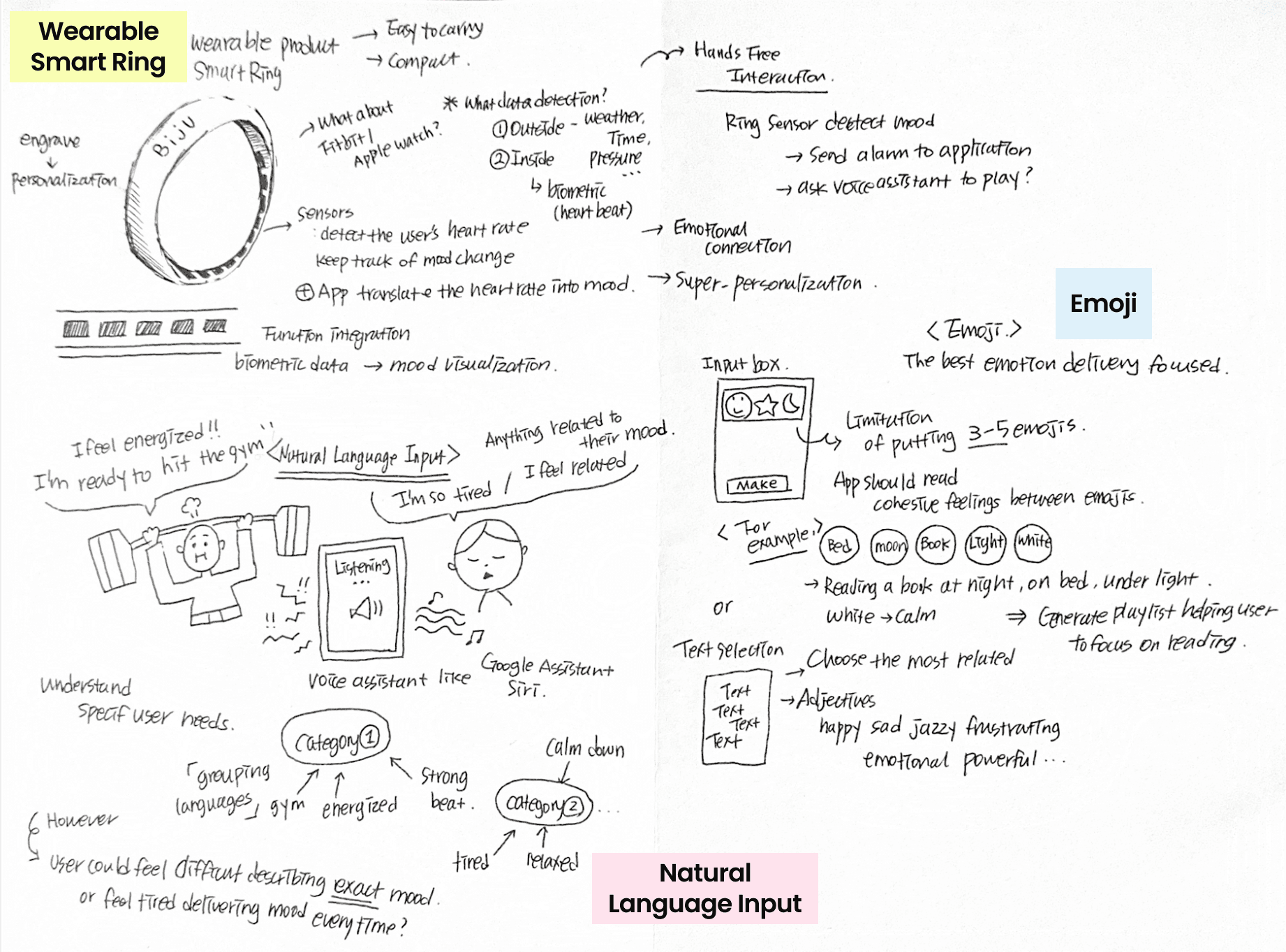 Result: Through quick brainstorming sessions, I identified the most effective approach for generating playlists that resonate with users' moods and contexts so I chose to utilize visual cue (image) for metaphor because it conveys mood and activity the most contextually.