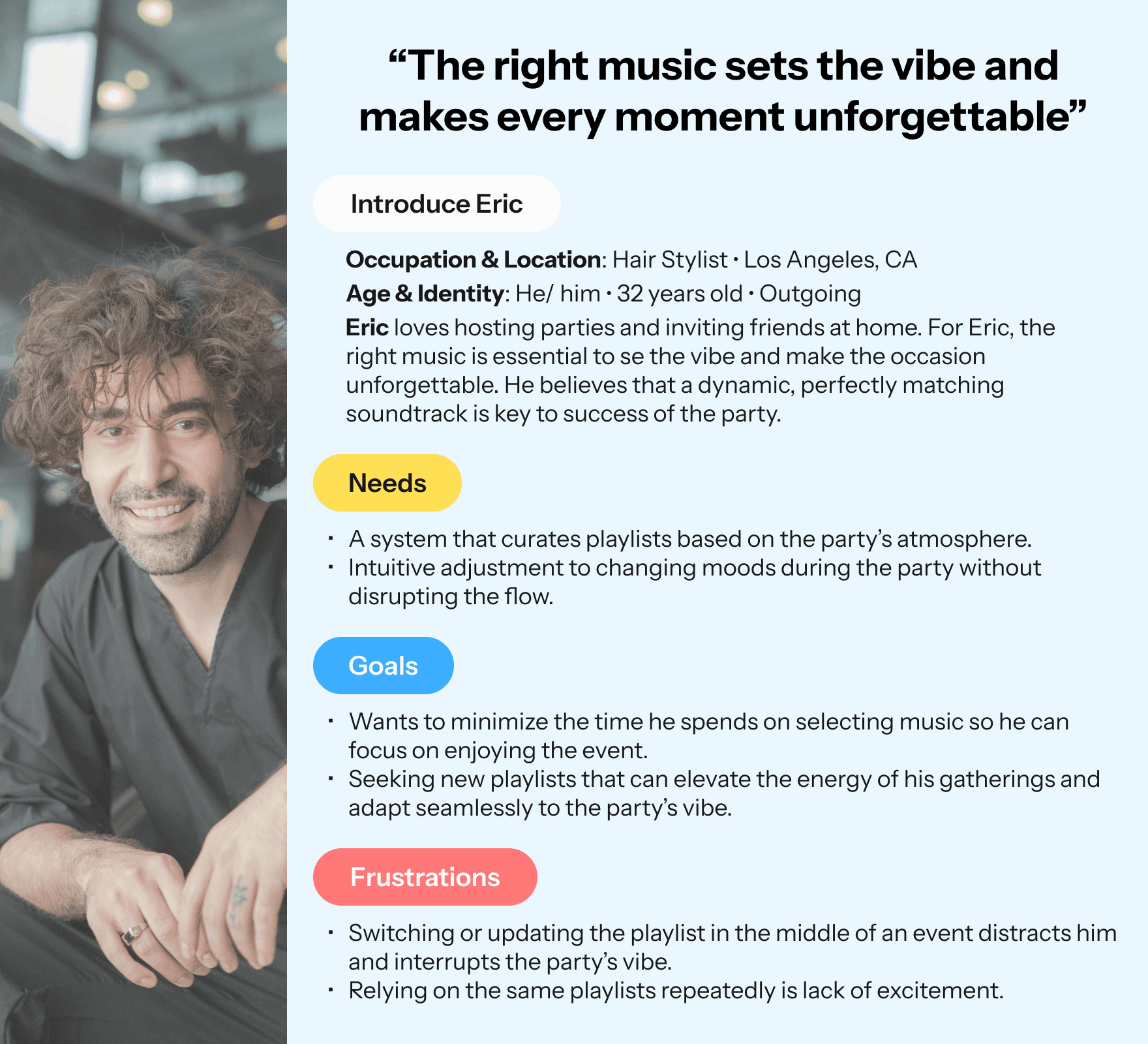 "Such a cool idea. Using image would be a good companion to a more traditional, music taste driven approach. BTW, you have a great portfolio and are clearly super creative-- don't be afraid to flex that when you present!"